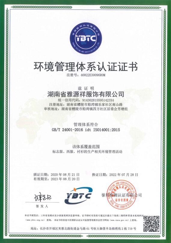 1、企業(yè)概況 湖南省雅源祥服飾有限公司地處湘贛邊境素有瓷城之稱的醴陵郊區(qū),企業(yè)創(chuàng)建于1995年,是行政執(zhí)法制服、被裝的生產(chǎn)企業(yè)。2、組織機(jī)構(gòu) 跟隨改革開(kāi)放的步伐,我公司不斷發(fā)展壯大,公司董事會(huì)下設(shè)總經(jīng)理辦公室、生產(chǎn)部、技術(shù)部、質(zhì)檢部、財(cái)務(wù)部、采購(gòu)部、業(yè)務(wù)部等部門(mén),下設(shè)有流水線西服生產(chǎn)車(chē)間、標(biāo)志服生產(chǎn)車(chē)間、襯衣生產(chǎn)車(chē)間、... [更多]